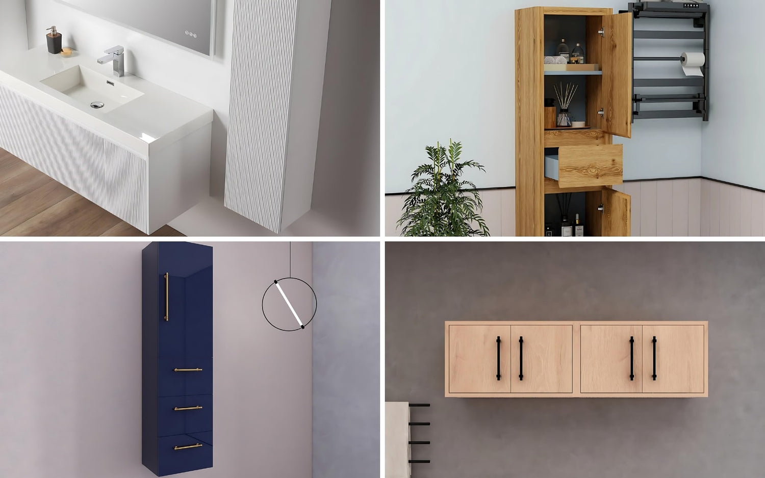 Louis 48" Modern Wall Mounted Vanity | Louis 60" Wall Mounted Linen Cabinet